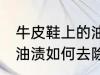 1、取来几片香蕉皮,用它擦试皮鞋上的油污,可使皮面洁净如新,因为香蕉皮里含吸单宁,单宁能去除油污。2、用洗洁精浓液滴在油点上,稍待片刻 ....