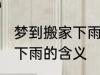 1、出行的人梦见搬家下雨,建议平顺出外,欠安回来。2、怀孕的人梦见搬家下雨,预示遭人破坏,五年营利困难,宜退守。3、恋爱中的人梦见 ....