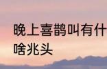 1、喜鹊在叫很多人认为是一种吉祥的象征,一般当正在谈恋爱的情人遇见喜鹊,代表好事将近,在近两年将要结婚。晚上看见喜鹊叫,说明家中 ....