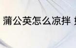 1、蒲公英100g、辣椒油5g、香油5g、味精5g、麻辣油5g、海鲜酱油10g、糖5g、盐5g。 2、将新鲜的蒲公英去根清洗干净,把水沥干。撒上盐, ....